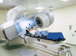 一般には、リニアックと呼ばれる直線加速器などの放射線治療装置が使われます。放射線ががん細胞の遺伝子を傷つけ、がん細胞を死滅させます。放射線には、エックス線、電子線、陽子線、ガンマ線などがあります。